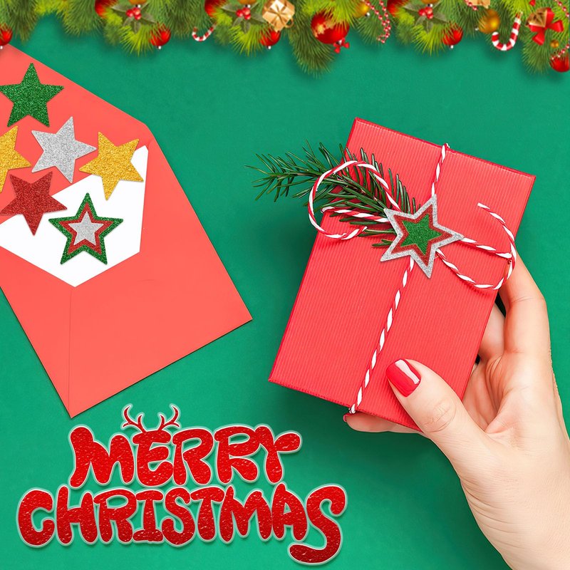 - Package Content: Package contains 300 star stickers contains 4 glitter colors: red, green, gold and silver, with 3 sizes: 0.98inch/25mm, 1.38inch/35mm and 1.78inch/45mm. Sufficient quantity and rich styles can meet your decorative needs, allowing you to create colorful handmade works