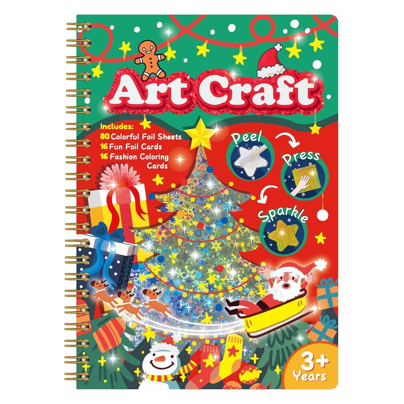 - Complete Crafting Set for Hours of Xmas Fun - Our value-packed kit includes everything your child needs to create stunning Christmas foil paper art: 16 foil paper art cards, 16 coloring cards, 80 vibrant foil sheets, and a wooden stick. The included instruction in the notebook makes it easy for kids to dive right into the fun, ensuring endless crafting adventures.