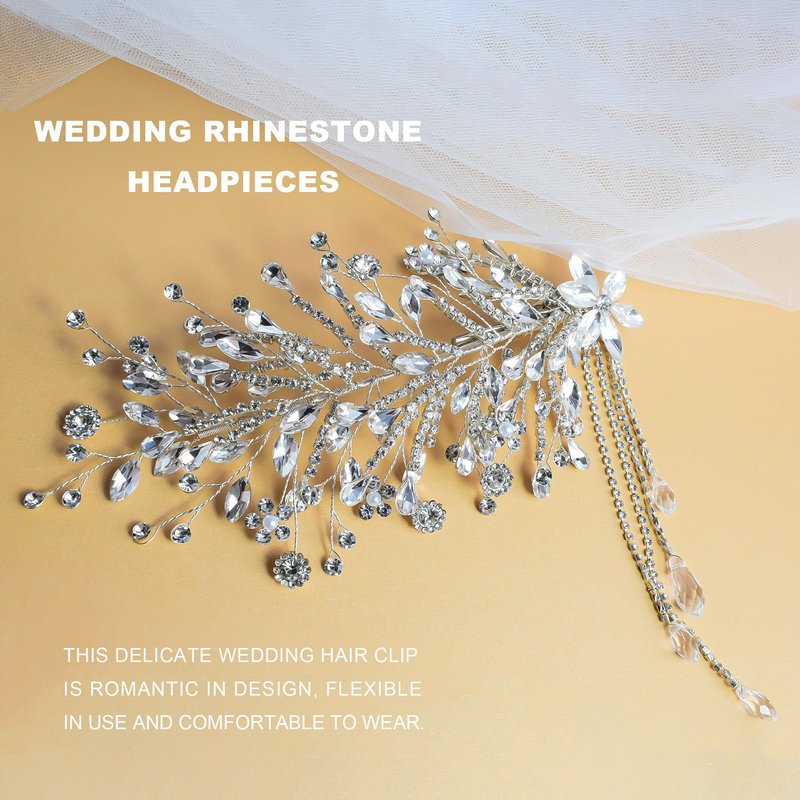 JULIYOOYOO Wedding Hair Accessories,Rhinestone Bridal Hair Accessories,Handmade Flower Hair Clips,Wedding Hair Pieces For Brides,Women's Wedding Hair Accessories With Tassel. (silver)