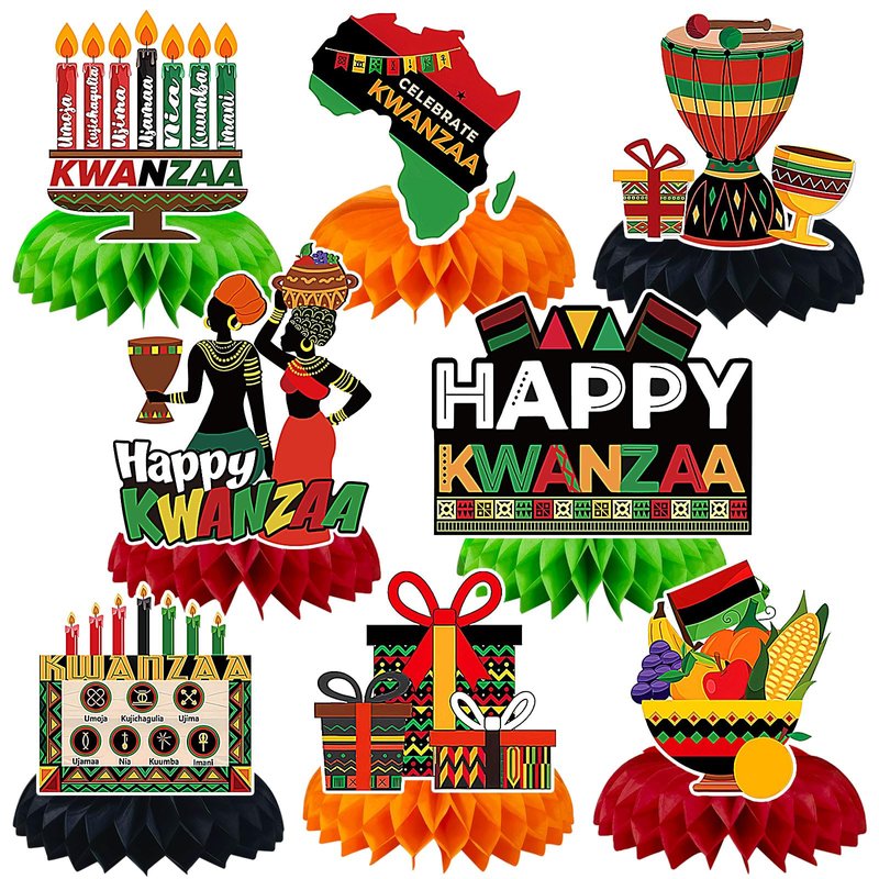 - Package Content: You will receive 8 styles of Kwanzaa table decorations honeycomb centerpieces, enough to meet your holiday decoration needs. Different patterns can be matched according to your own preferences and needs, adding a rich holiday atmosphere to your Kwanzaa party