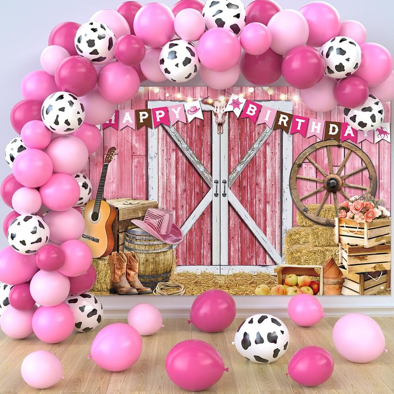 - Package Includes: You will get 1pcs cowgirl birthday backdrop and 65pcs latex cowgirl balloons in 12 inch and 5 inch, 1 roll of ribbon, balloon chain and adhesive dot; the whole set is good value for the amount you get and can also save you a lot of time to prepare other separate parts and you can host a wonderful cowgirl party easily. Please Note: Due to balloons making process, there may be some odor when you first open it, which is normal, recommend to inflate with a balloon pump tool instead of mouth