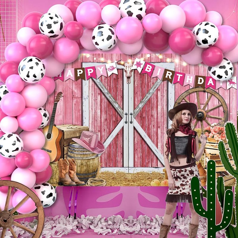 - Easy to Set Up: The cowgirl birthday party decorations are equipped with balloon tools to help you easily assemble balloons together and hang them into a balloon arch garland. The cowgirl background has four copper holes in each corner and is equipped with a long rope. You can easily pass the rope through the copper ring, hang it or stick it anywhere, very quickly your space is all ready for the party