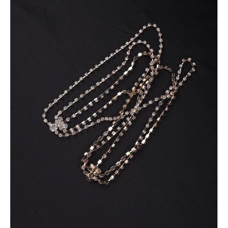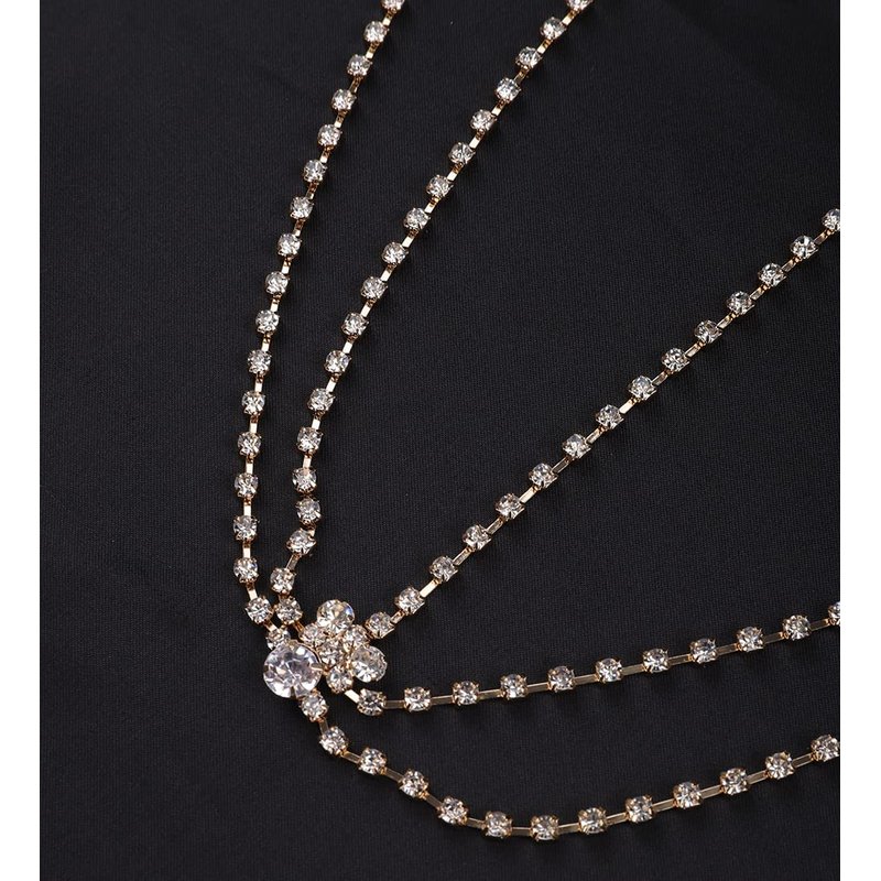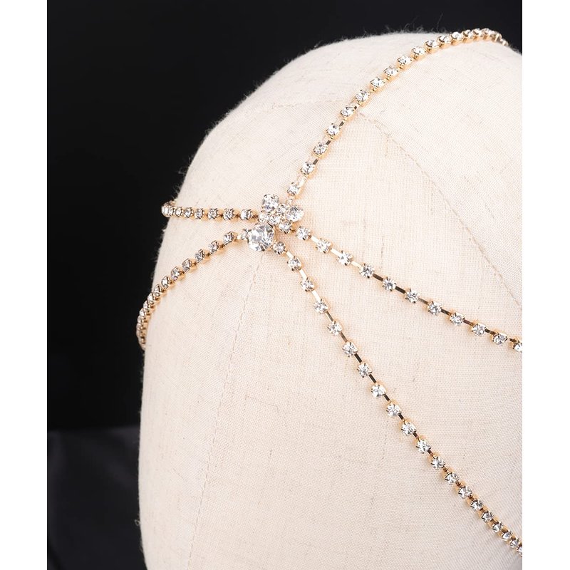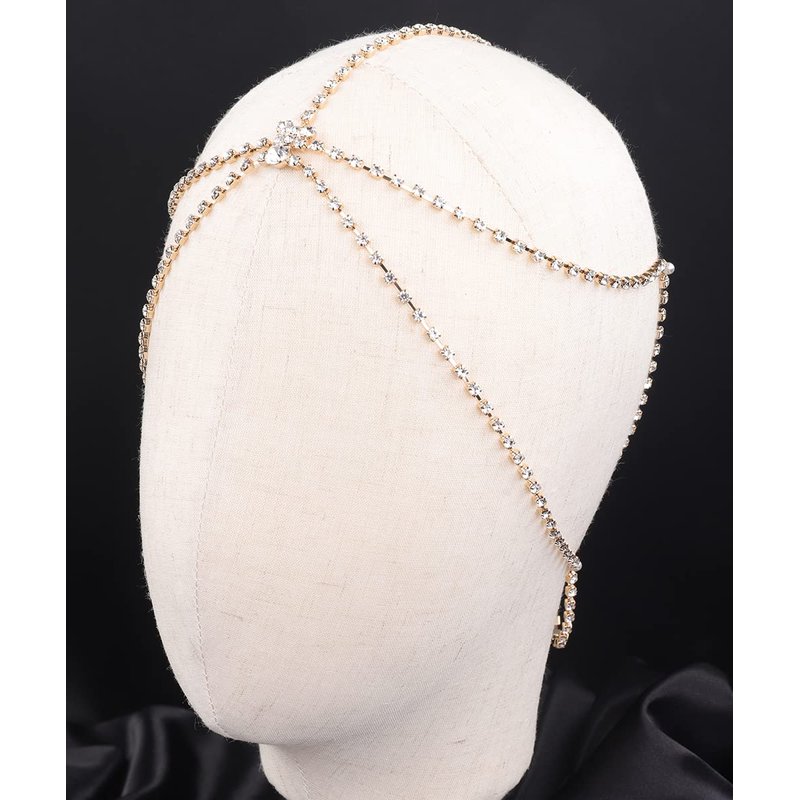 Jumwrit Dainty Layered Rhinestone Head Chain for Teens Bohemian Forehead Bridal Headpiece Wedding Hair Accessories for Women and Girls(Gold)
