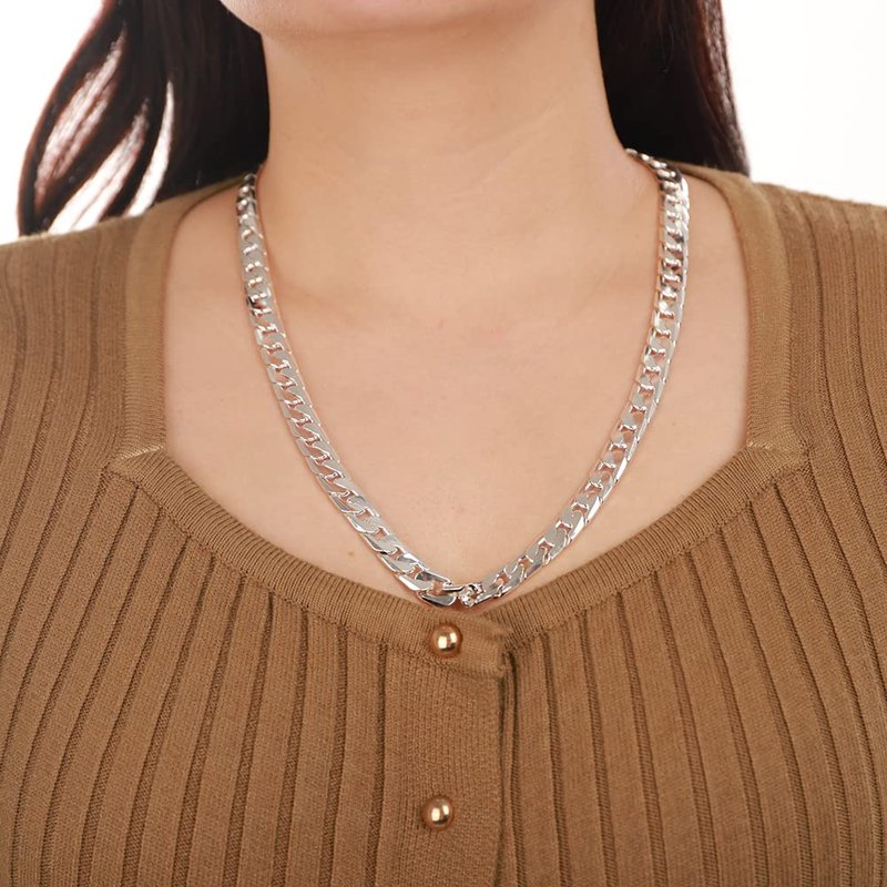 Jumwrit Silver Cuban Link Chain Necklace Trendy Cable Chain Necklace Dainty Lock Pendant Punk Necklace Minimalist Necklace Jewelry for Women Girls(Style 1)