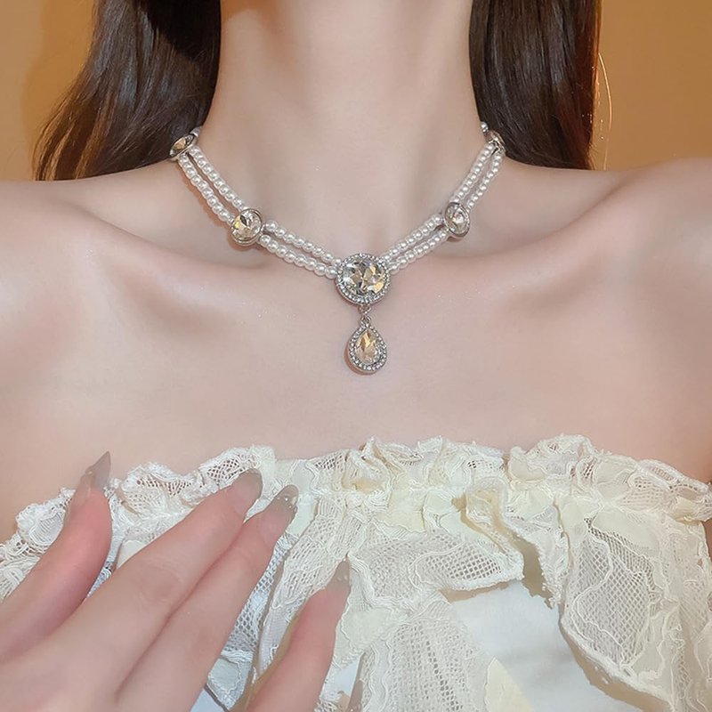 - The classic pearl choker necklace has a unique layered design, statement, charming and trendy.