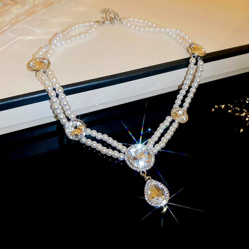 - Delicate necklace is made of imitation pearl, rhinestone and alloy, hypoallergenic, safe for your skin.