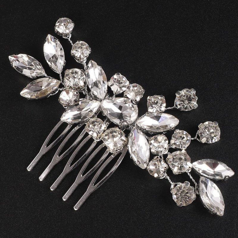 Jumwrit Wedding Hair Comb for Brides Rhinestone Hair Comb Hair Accessories Handmade Bridal Headpiece for Women and Girls(Silver)