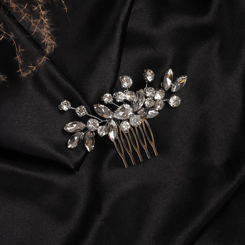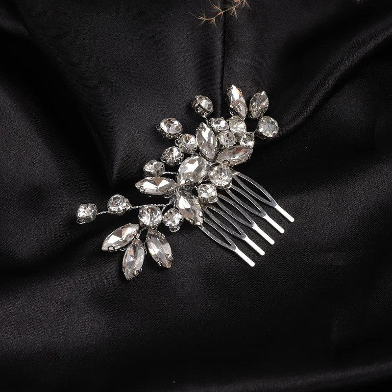 - Delicate bridal hair comb is made of rhinestone and alloy, handmade, exquisite, durable and pretty with full rhinestone cluster.