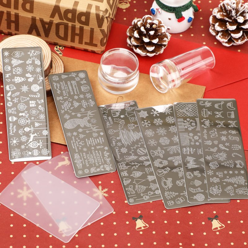 - Nail Stamp Plate Kit: Christmas nail stamping plates kit includes 6 nail art templates, 2 stampers, and 2 scrapers. These christmas manicure art templates make you have more choices, choose your favorite patterns, and then make beautiful nails in festival