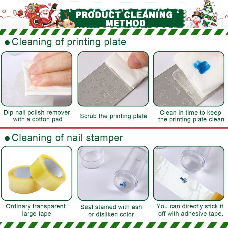 - Easy to Use: You only need to apply special nail art gel on the Christmas nail stamp, and scrape off the excess gel with the scraper, then use the stamper to pick up the image, and finally press the stamp on the nail to easily get the xmas nail pattern that you want