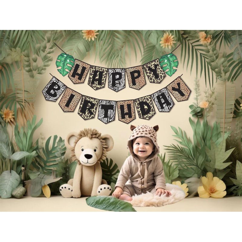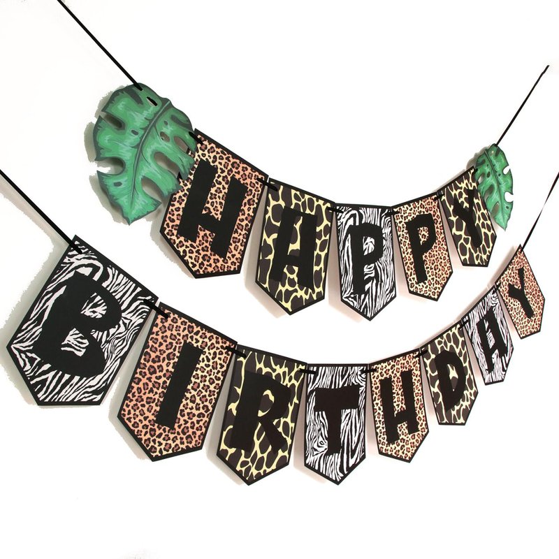 Jungle Birthday Banner,Leopard Print Banner,Safari party Decor,Wlid Animal Print Banner,Zoo Animal Party Supplies