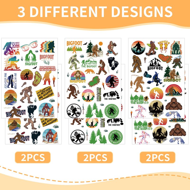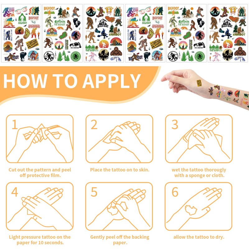 - What You Get: Unleash your wild side with our sasquatch-themed temporary tattoo set; featuring 3 unique designs across 6 sheets tattoos