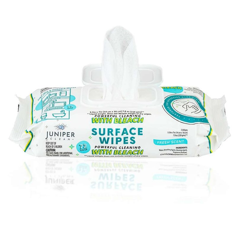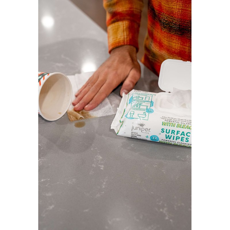 Juniper CLEAN 1 Pack Surface Wipes with Bleach, All-Purpose Cleaner for Bathroom, Kitchen, Office, 72 Count Soft Flow, Fresh Scent, Lint Free & Durable