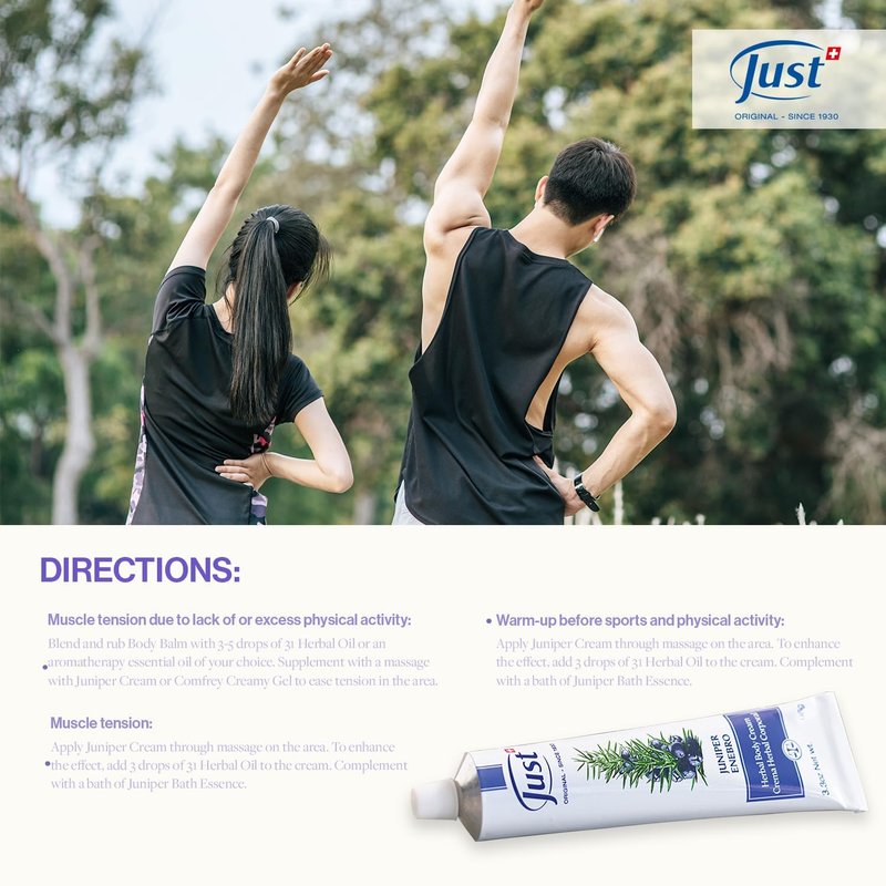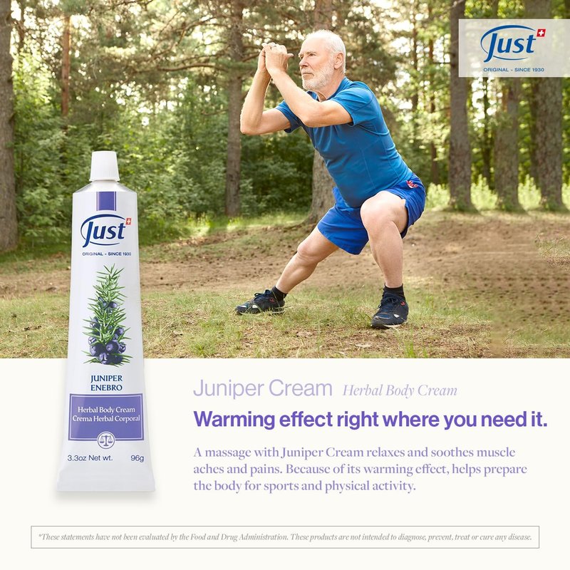 Juniper Massage Cream, 96g. Soothes Muscle & Joint Pain. Pre-Workout & Post-Work Out Body Cream. Herbal Body Cream for Elderly People by Swiss Just.