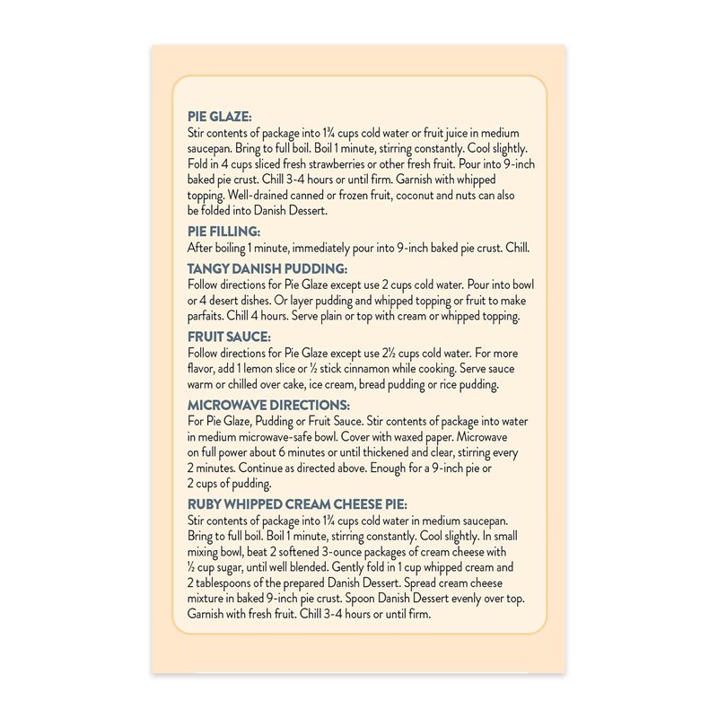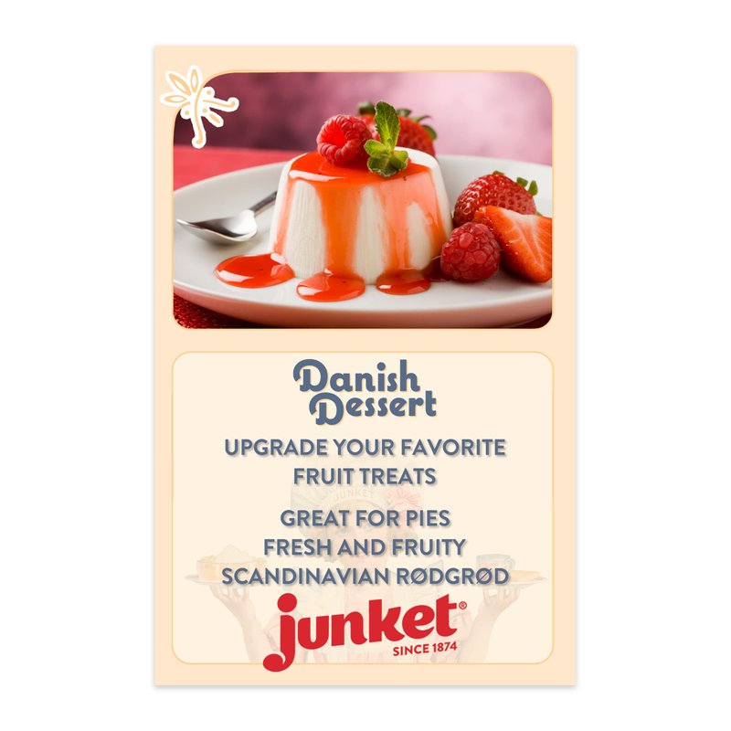 Junket Danish Dessert - Instant Dessert Mix for Pie Filling, Pudding, or Glaze - Enhances Fruit Pies - Gluten Free, Kosher Dairy - Raspberry, 4.75 Oz. This unique, easily prepared dessert comes from an original recipe for the Danish favorite, Rødgrød. A bright and fruity flavor, with all the sweetness of Summer. Simply add water, heat, and enjoy the tastiest pudding, pie filling topping – think rice pudding! – or glaze this side of Europe.