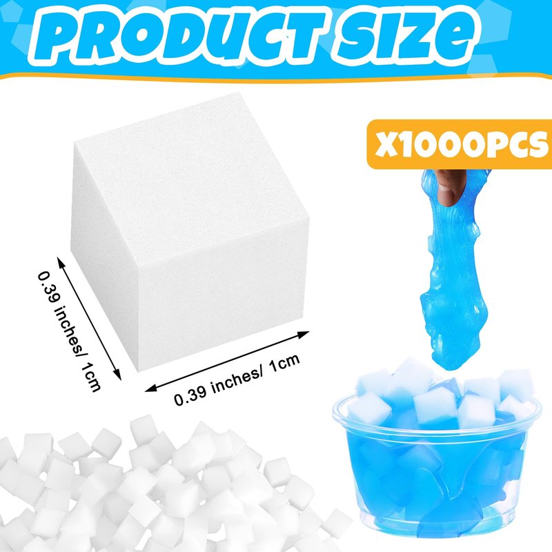 Features: The jelly cubes are safe for boys and girls to play with, ideal for arts, crafts, and school projects. The jelly cubes are also suitable for prizes, party favor supplies, holiday birthday gifts, etc. Specifications: Material: sponge Color: white Size: about 0.39 x 0.39 inch/ 1 x 1 cm Package includes: 1000 x Jelly cubes Notes: Manual measurement, please allow slight errors on size. The color may exist a slight difference due to different screen displays. Small items, adult supervision is needed to avoid swallowing risk. Suitable for people over 12 years old.