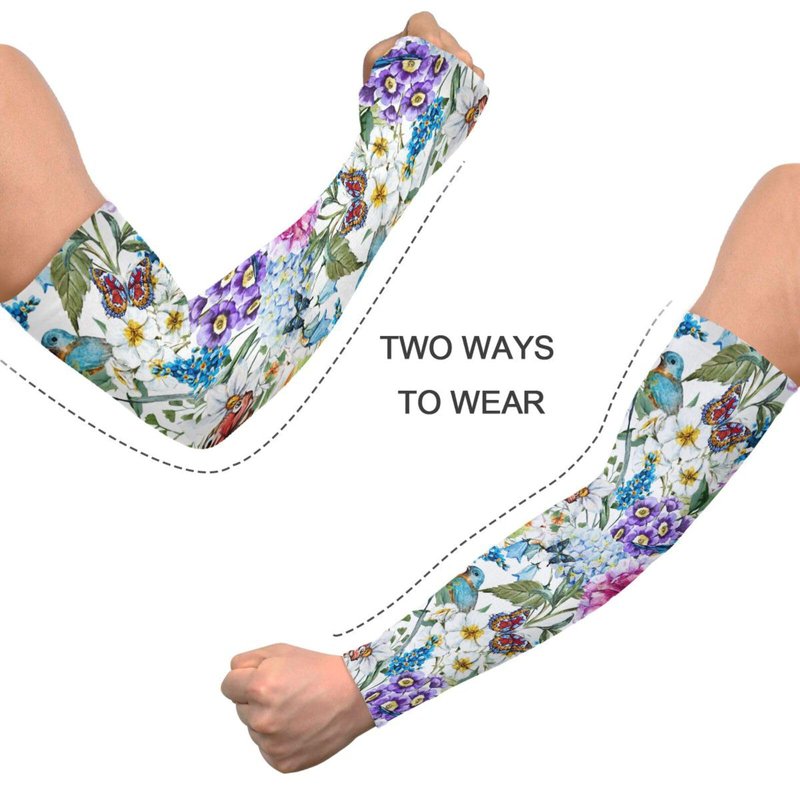 JUNZAN Gardening Arm Sleeves Farm Sun Protection Cooling Sleeves for Women Men with Thumb Hole Floral Flowers