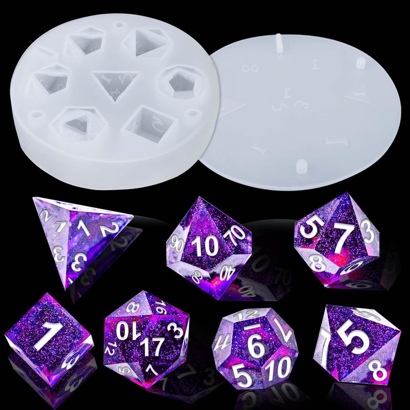 - Dice molds for resin - Our polyhedral DND dice resin mold set design with 7 stereoscopic dice cavities: D4, D6, D8, D10 (00-90), D10 (0-9), D12, and D20. Each resin molds silicone with clear numbers, perfect for DIY dices making, bring a better experience to your game