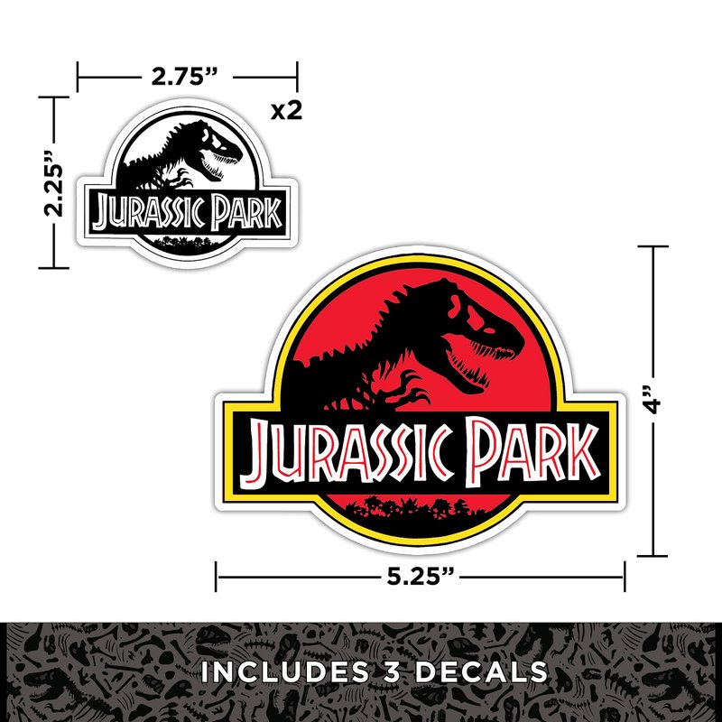 - Set of 7 Jurassic Park Decals - Our Jurassic Park decals look great on any smooth surface. Decorate your water bottles, laptop, notebook, or even your cars! This value pack, proudly made in the USA and officially licensed by Universal Studios, includes a total of seven high-quality decals that capture the essence of Jurassic Park.