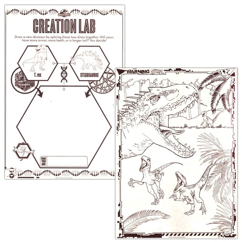 - Delight your Jurassic World and dinosaur fan with this Coloring and Activity book set featuring Jurassic Park dinosaurs!