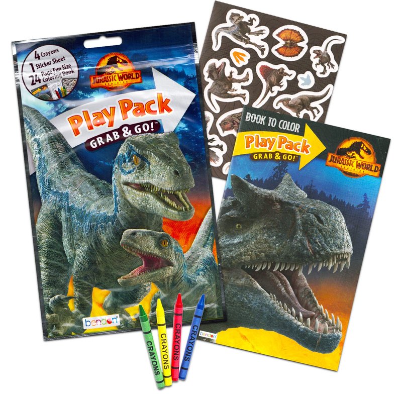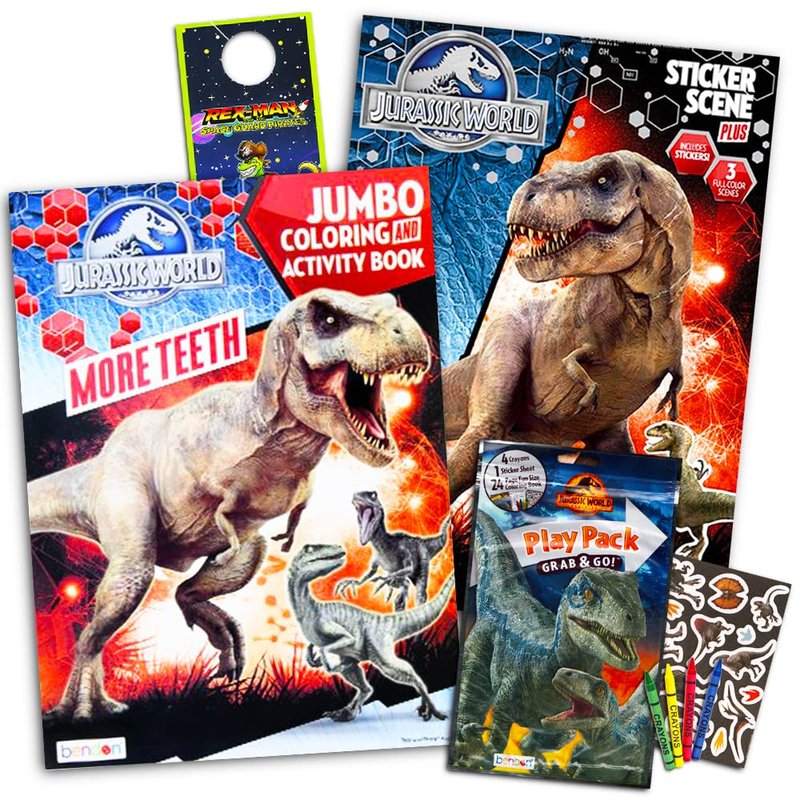 - Set of 3 Jurassic World books filled with dinosaur stickers, games, puzzles, mazes and coloring activities. Cover art may vary season to season.