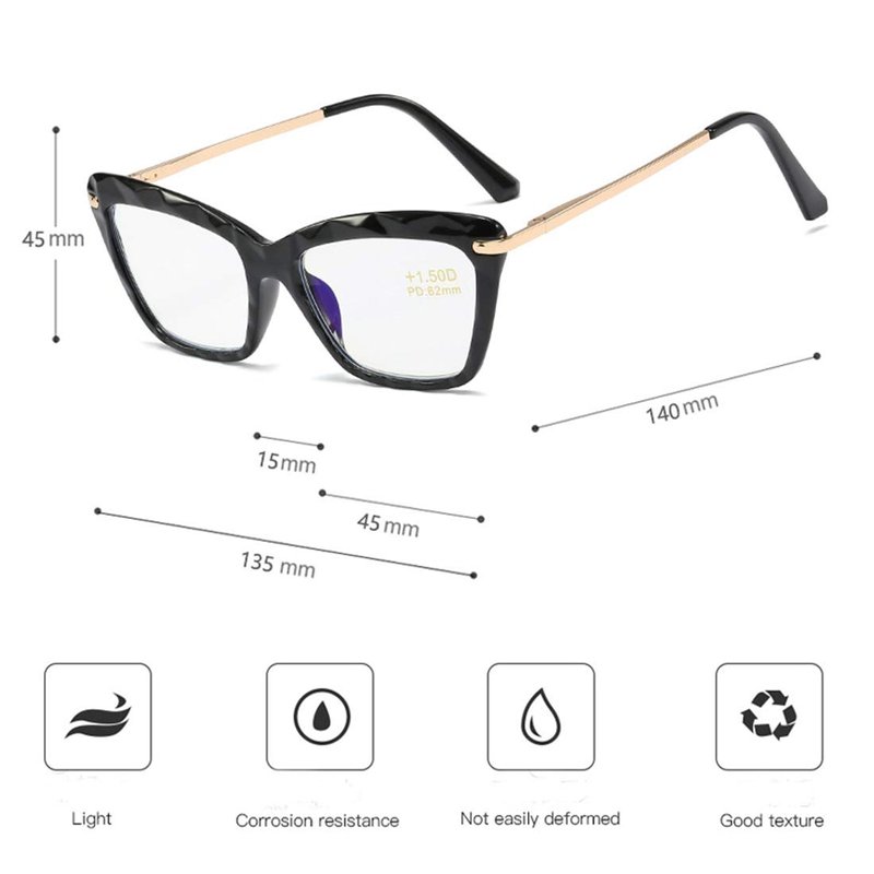 - 【Transparent Crystal Cateye Design Frames】:Lightweight Texture Transparent Crystal Cateye Design Frames make you more stylish.Vintage-inspired cateye shape perfectly complement your sophisticated and slightly exotic look, Ideal for women with square or diamond faces. The composite frame is made of high quality material technology with metal hinges, Clear crystal texture, exquisite and sturdy.
