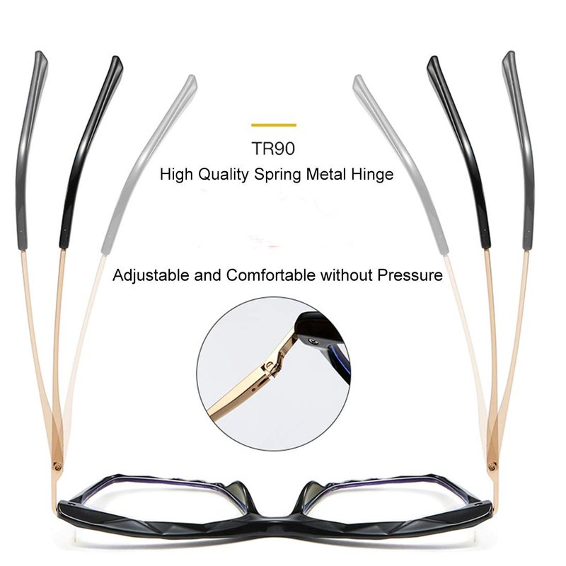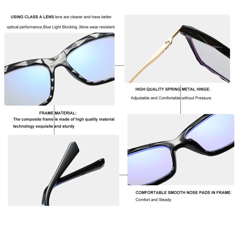 - 【Light Rim and Spring Hinges】: Light Rim is super lightweight. When you put on this pair of glasses you hardly feel the pressure from the weight of it. Spring hinge can be adjusted freely. Its flexibility can avoid extrusion from the glasses on the head. The pressure on the head and eyes is effectively relieved.