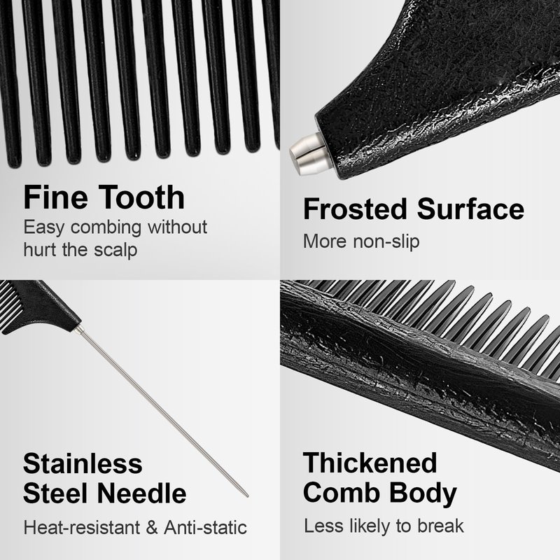 - 【Multi-Purpose】The fine tooth teasing comb have wide applications.Such as braided hairstyles,hair cutting,sectioning,back combing,weaving,hair coloring.Suitable for Salon and Home.Easily create the hairstyle you want