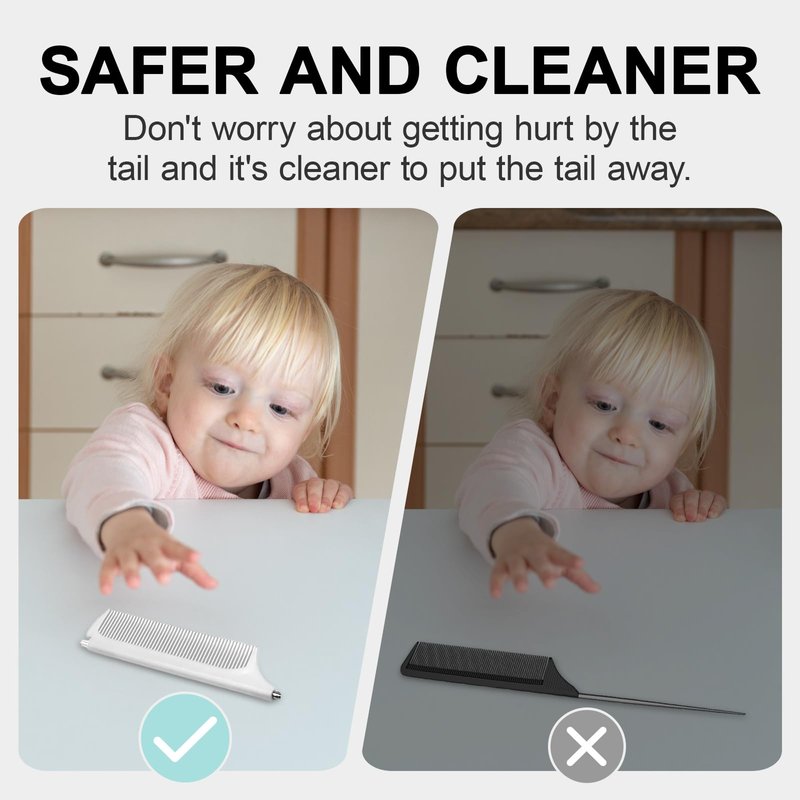 - 【Retractable Pin Tail】The parting comb is only 4.72 inches when the long tail is retracted.It's very compact and lightweight that it can easily fit in your bag or purse to detangling your hair anywhere,and it's also great for travel