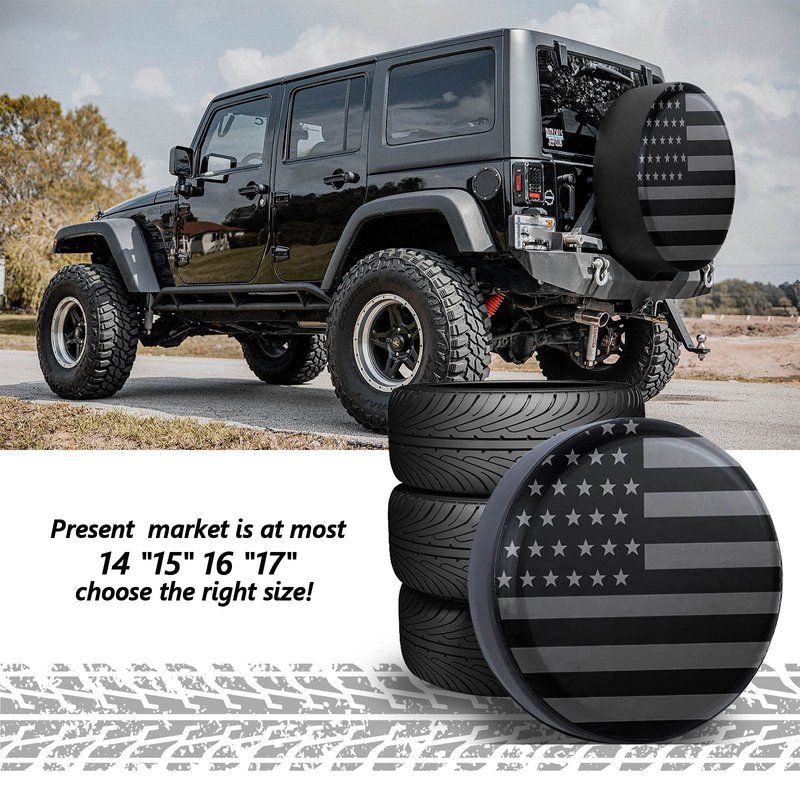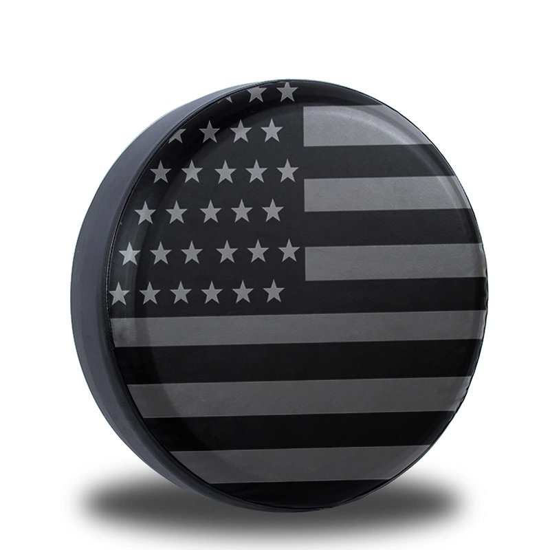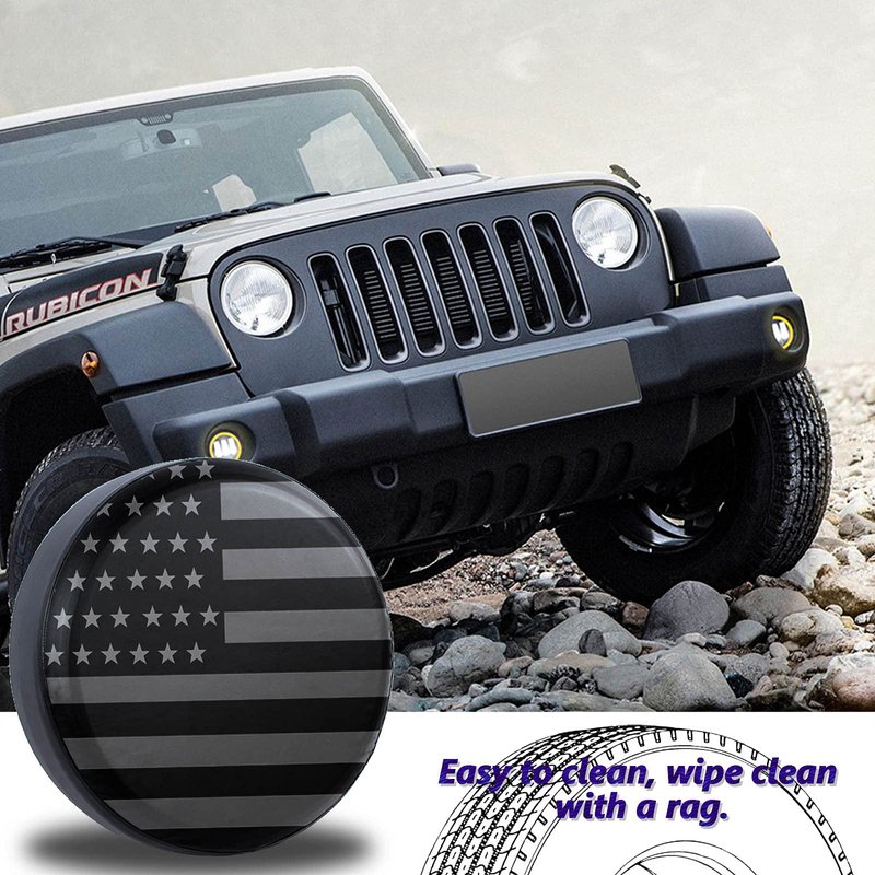 - ✔[High-quality materials]:Tire covers are made of heavy duty PVC with PU surface which is waterproof,dustproof,durable,easy to clean,soft and non-scratch.Maintain shape and long lasting in any temperature. Popular American flag desgin which is beautiful and tasteful. Reinforced durability with neat and tight stitching.