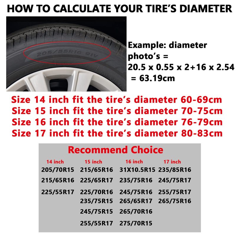 Cover Size 17" fits for tire diameter 80~82.55cm/31.5"-32.5"