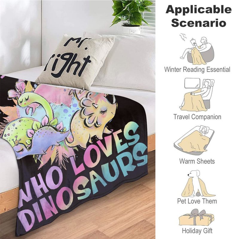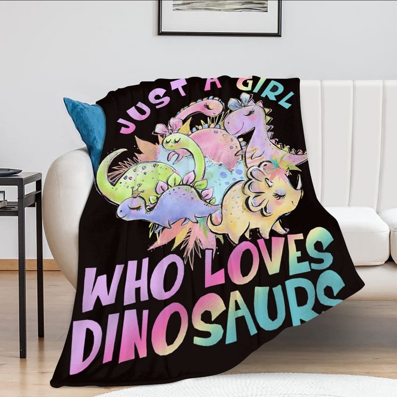 Just A Girl Who Loves Dinosaurs Blanket Cute Dinosaurs Decor Throw Blanket Gifts for Girls Super Warm Soft Plush Lightweight Fleece Flannel Blanket Winter Bedding Blanket for Kids Adults Women 40"x50"