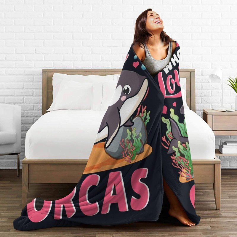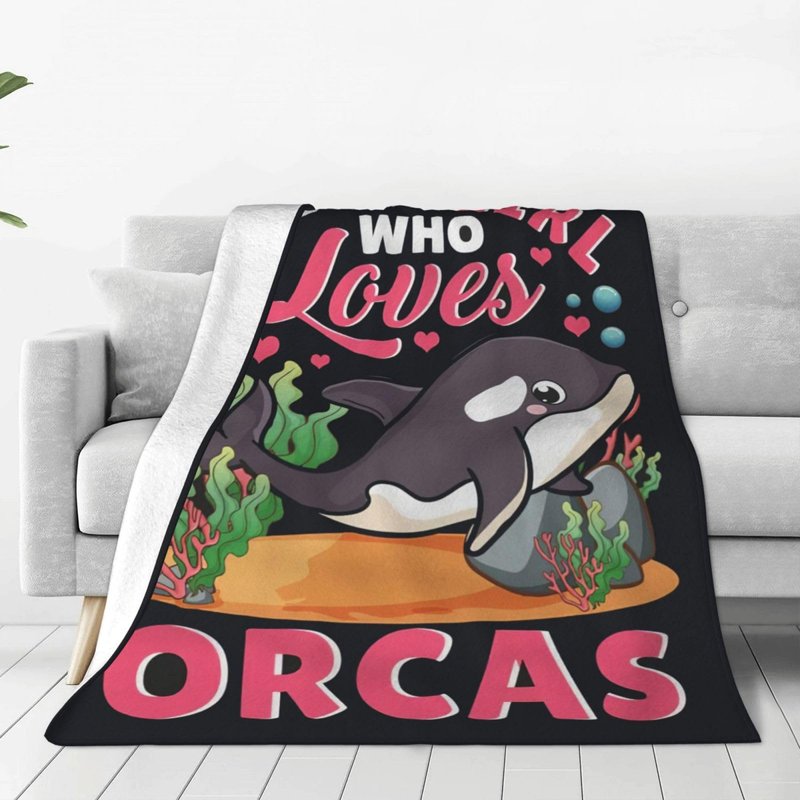 Just A Girl Who Loves Orcas Blanket Cute Orcas Decor Throw Blanket Gifts for Girls Boys Orcas Lover Super Warm Soft Plush Lightweight Fleece Flannel Bedding Blanket for Kids Adult Men Women 50"X40"