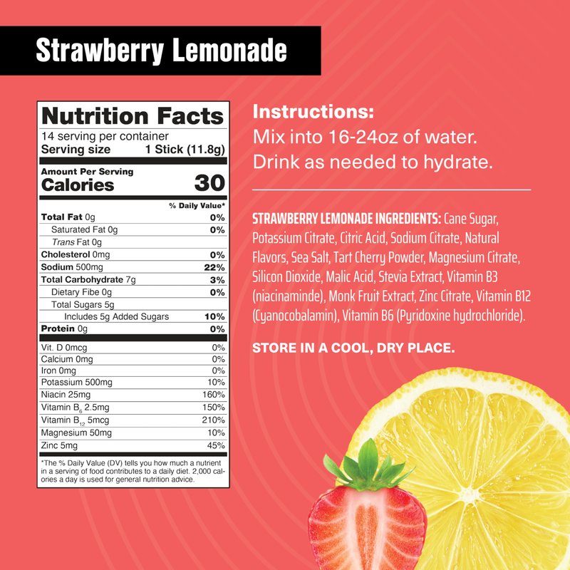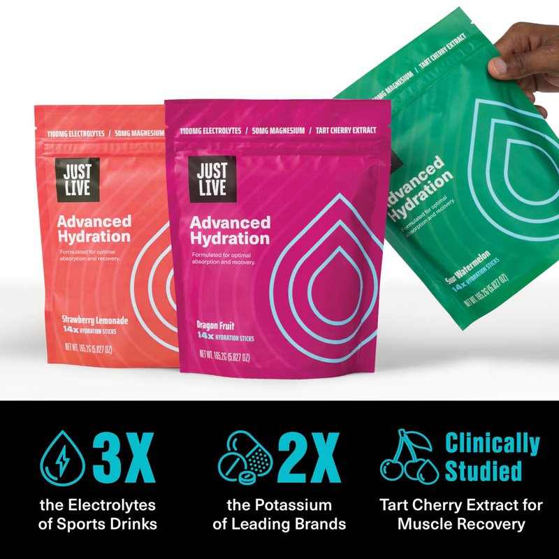 Just Live Advanced Hydration - Strawberry Lemonade, Electrolyte Drink Mix, Tart Cherry Extract, Supports Recovery & Absorption, Low Sugar, 14 Pack