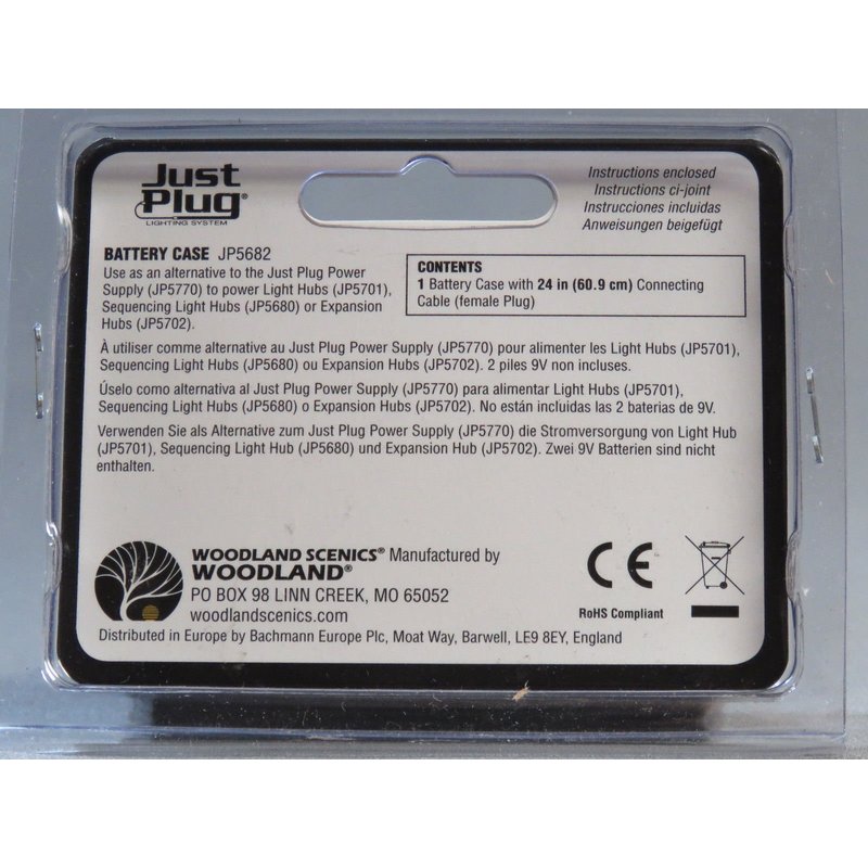 Woodland Scenics WDS 5682 JP 5682 Woodland Scenics Battery Case for Just Plug Lighting System Use as an alternative to the Just Plug Power Supply to power Light Hubs, Sequencing Light Hubs and Expansion Hubs. *Two 9-Volt batteries not included