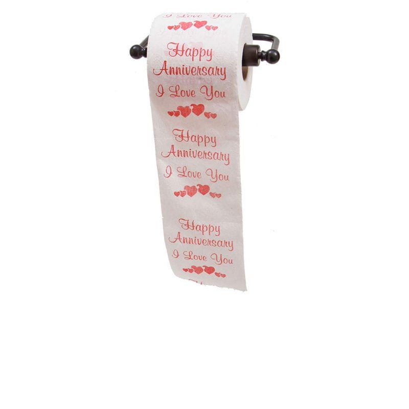 JustPaperRoses Happy Anniversary, Printed Toilet Paper Gag Gift, Funny Novelty Wedding or Dating Anniversary Present for Him or Her