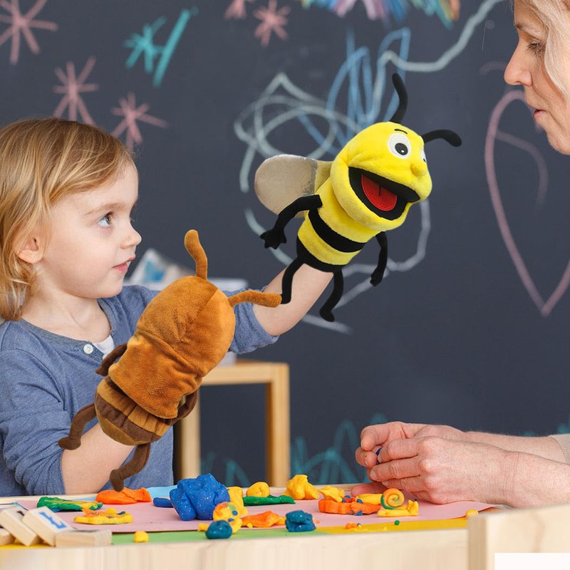 - Unprecedented Insect Animal Puppets: JUSTQUNSEEN has been dedicated to the development of plush puppets and has recently launched the latest series of puppets - the Insect Animal Puppets series, redesigning six common insect animal images: bee puppets, butterfly puppets, ladybug puppets, dragonfly puppets, ant puppets, and caterpillar puppets. This must be an unprecedented insect series puppets.