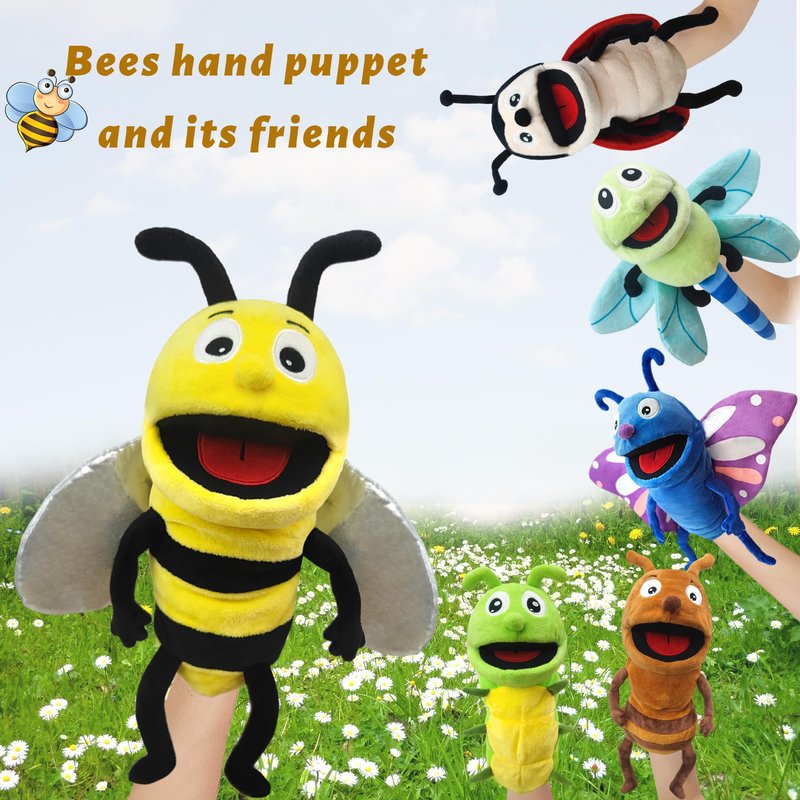 JUSTQUNSEEN Hand Puppet Realistic Plush Puppet 13",Insect Animal Puppets for Kids Insect Stuffed Animal Hand Puppet with Moveable Mouth,Soft Stuffed Bee Puppet Story Toy Puppets Role Play Show Game