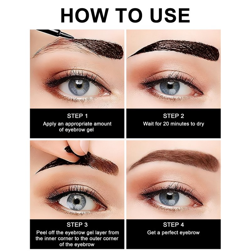 - Easy To Apply and Peel off: Use our upgraded eyebrow brush to evenly apply a layer of eyebrow gel on the eyebrows, which can be built up. Coverage, and wait patiently for 20 minutes (longer coloring effect is better), then peel off, and you can get a pair of full and delicate eyebrows. If you want to have long-lasting eyebrows, please do not use cleaning products on your eyebrows within 24 hours.