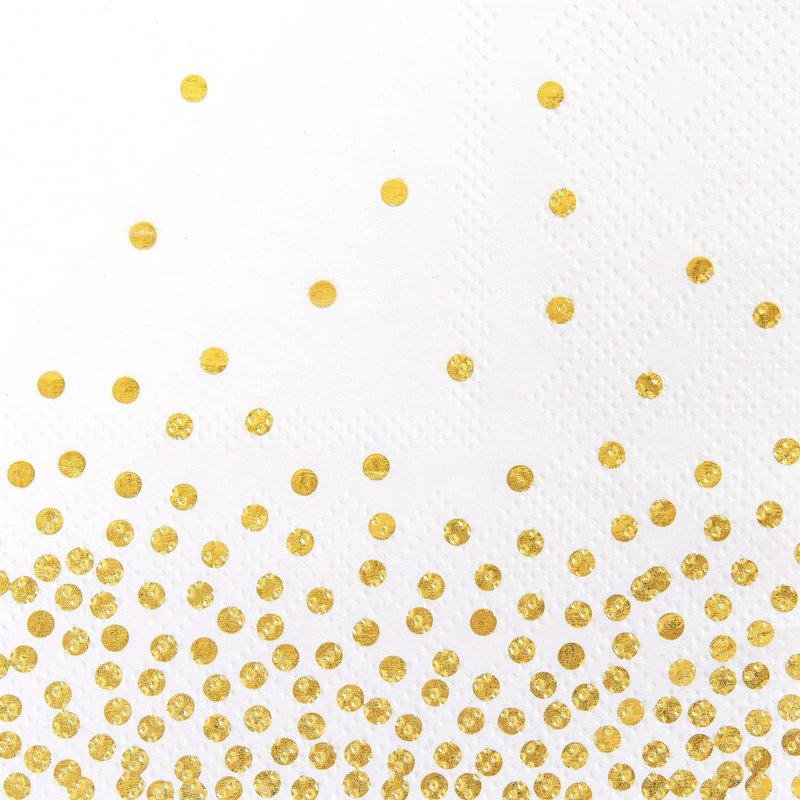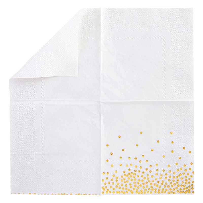 - Gold Napkins Disposable: The decorative white napkins feature cute and decorative gold polka dot confetti foil sparkles that are sure to complement your gold party table decorations