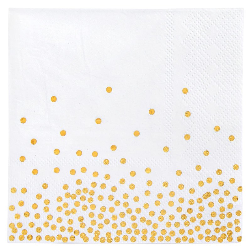 - What's Included: This bulk pack includes 100 disposable white and gold polka dot napkins, providing ample supply for any upcoming event or occasion