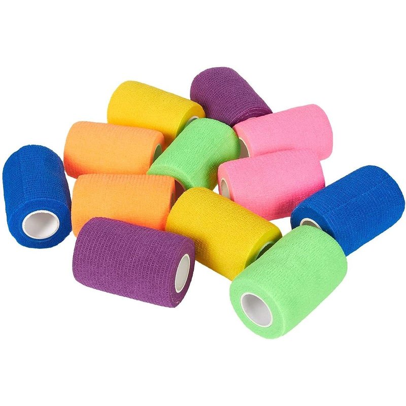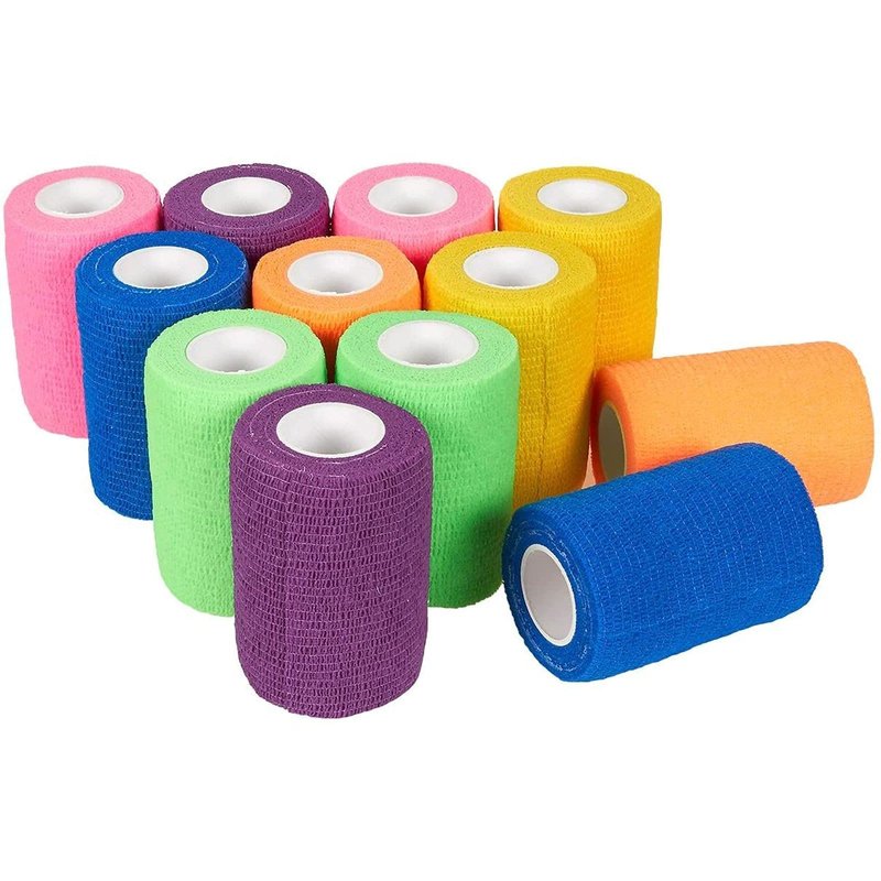 Juvale 12 Rolls Self Adhesive Stretch Bandage Wrap 2 Inch x 6 Yards, Adherent Cohesive Vet Tape for First Aid, Wrist and Ankle Swelling, Animals, Pets, Sports (6 Colors)