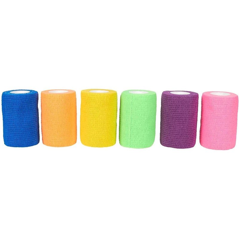 - What's Included: This value set includes 12 stretch bandage rolls showcasing a color palette of 6 assorted hues including, blue, purple, red, tan, green, and white