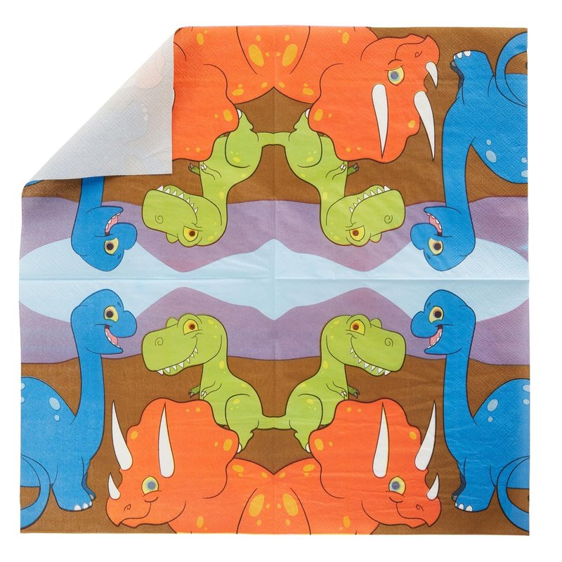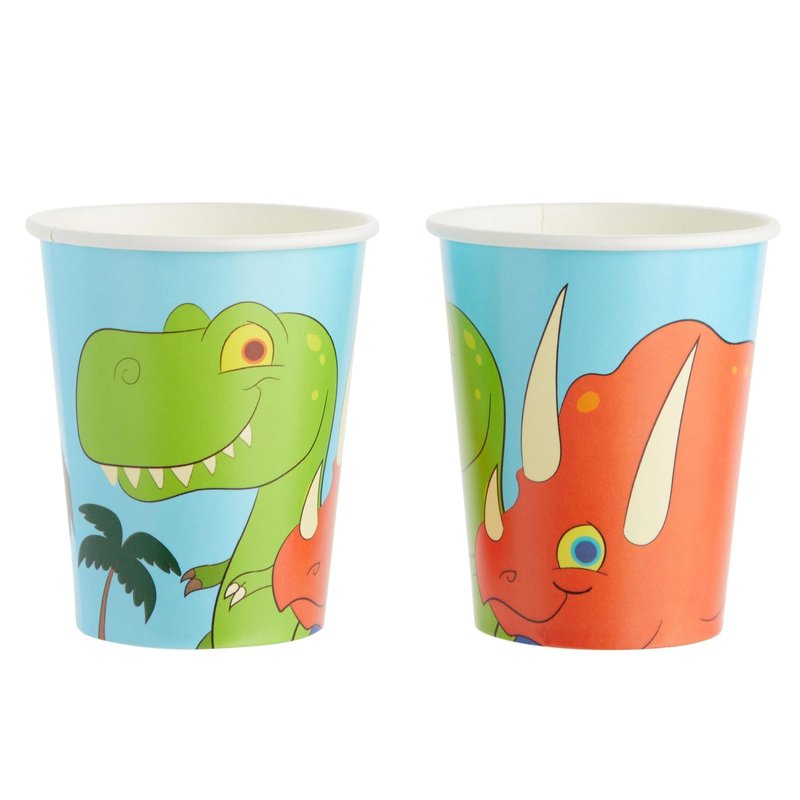- Dimensions: These dinosaur plates for birthday party decor measure 9 inches in diameter; flatware is 6 inches long; paper cups hold 9 ounces of liquid; napkins measure 13 x 13 inches unfolded, 6.5 x 6.5 inches folded