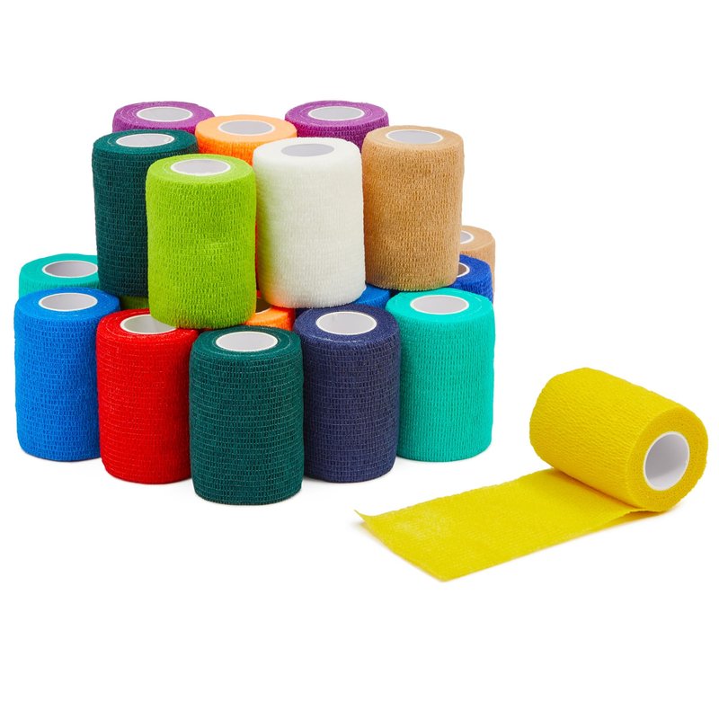 - Cohesive Bandage: Whether it's for wounds, athletic sports injuries, or general support, this first aid pre wrap is a must have. It comes with 24 rolls of colored elastic bandage wrap. It's perfect for wrapping injured ankles, wrists, fingers, toes, elbows, or knees. Self adherent wrap is a valuable addition to classrooms, offices, and homes in case an emergency strikes