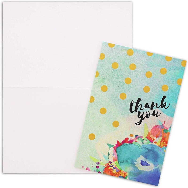 Juvale Blank Thank You Cards and Envelopes, Cute Watercolor Greeting Cards (4 x 6 In, 48 Pack)