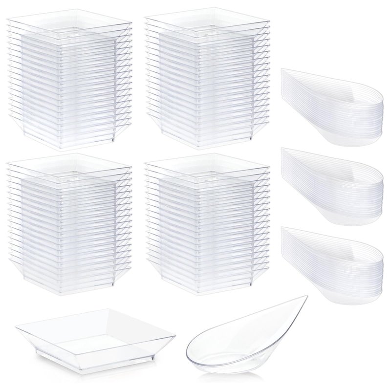 - High Quality: Our mini dessert plates and one bite appetizer spoons are made from durable clear plastic that's sure to last throughout your entire event no matter what you're serving
