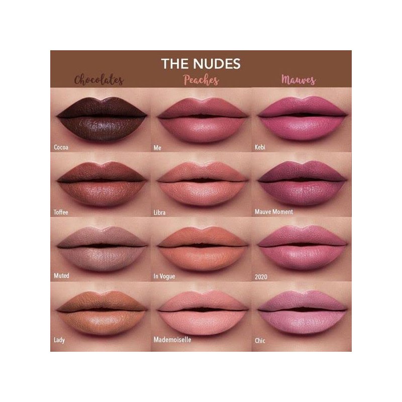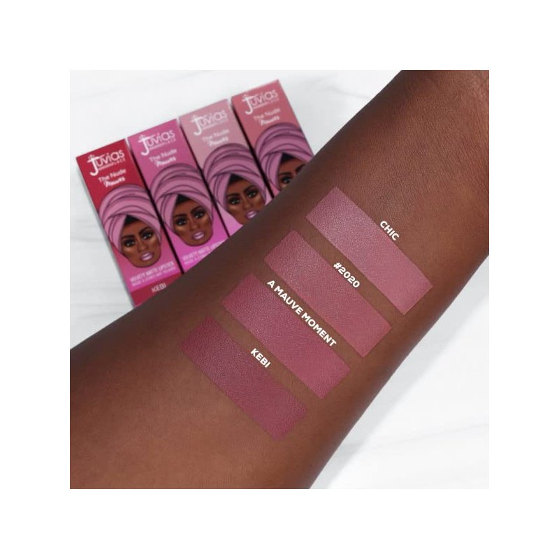 The Nude Velvety Matte Lipstick collection includes long-lasting color variants in pink, mauve, chocolate, and tan to create beautiful nude lips. Our velvet-matte lipsticks have a matte finish and a velvet consistency, giving the appearance of incredibly smooth, soft lips. They provide a bold, nude color that will make your lips pop all day, no matter the occasion. These matte lipsticks complement our Juvia's Place lip gloss collection and other lip products to create a variety of cosmetic looks ranging from subtle to dramatic. They are simple to apply and come off with damp wipes or a makeup remover. These long-lasting lipsticks will suit all complexions and perfect for those who appreciate beauty, makeup, and cosmetics.