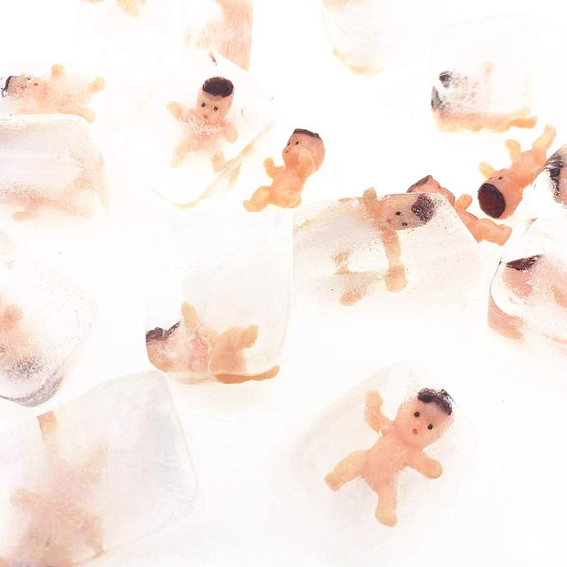 - Baby Shower Games: There are 60 mini plastic babies in the package. Used as shower game. Fill ice tray with some water let freeze, then put doll and more water in and freeze.