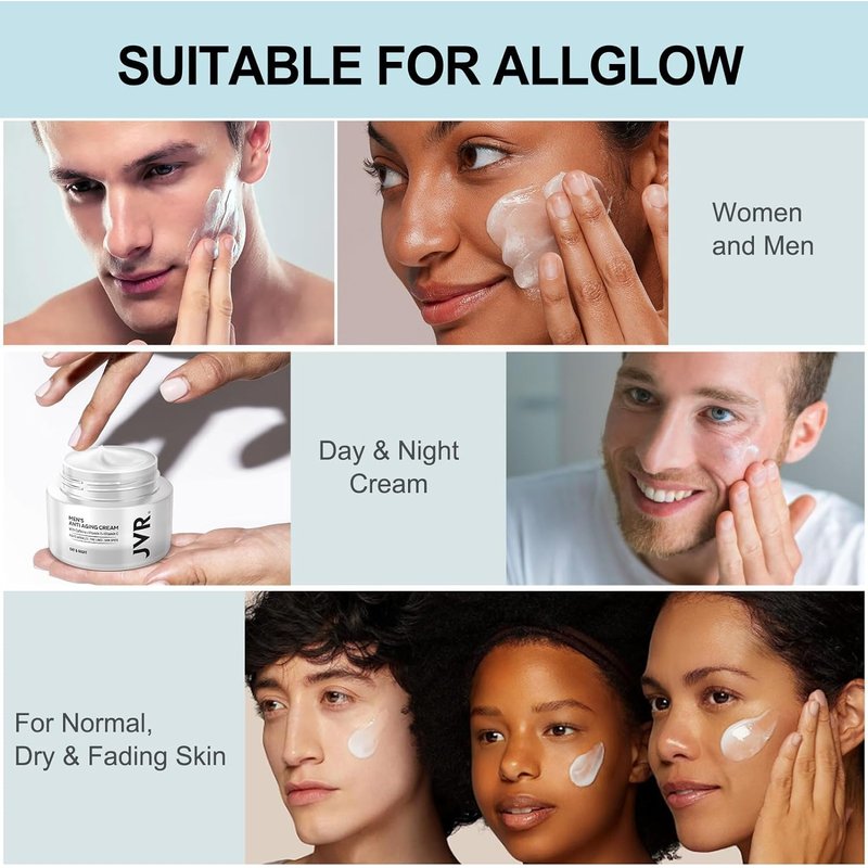 - 【ACHIEVE YOUTHFUL TIGHTNESS】JVR anti-age cream is a perfect face moisturizer for men. It hydrates, tightens, and leaves skin feeling rejuvenated, and significantly diminishes wrinkles,lines, crow's feet, and other signs of aging. Great Mens facial moisturizer